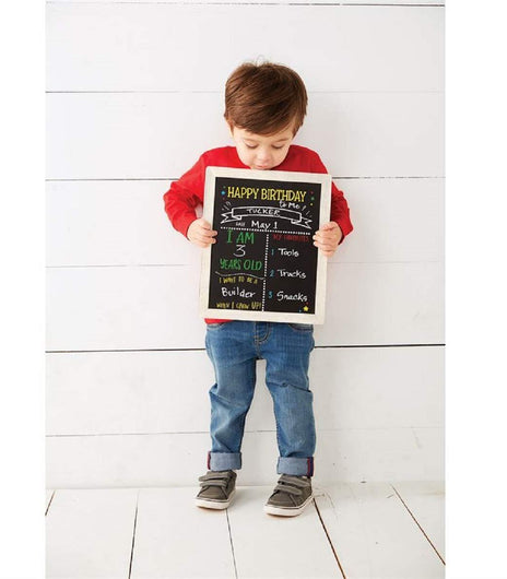 Back to School, Birthday, Chalkboard, Happy Birthday, Kids, Personalize, School, SignMango wood chalkboard sign features printed areas for chalk personalization. "HAPPY BIRTHDAY" details are on one side and "BACK TO SCHOOL" on the reverse. The...
